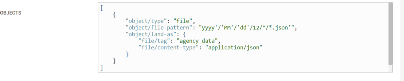 yyyy'/'MM'/'dd'/*/*/*.json - New Pattern: